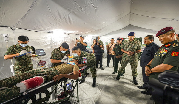 Beliau turut menyaksikan demonstrasi Hospital Hadapan yang menampilkan fasiliti perubatan medan seperti Triage,Bilik Pembedahan serta pasukan baharu,Forward Anaesthesia and Surgical Team (FAST) – sebuah unit mobil yang mampu melaksanakan rawatan pembedahan segera di kawasan operasi termasuk misi kemanusiaan.