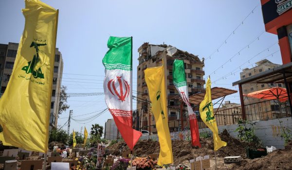 Bendera Hizbullah dan Iran berkibar di tanah perkuburan sementara di Selatan Lubnan/Foto REUTERS